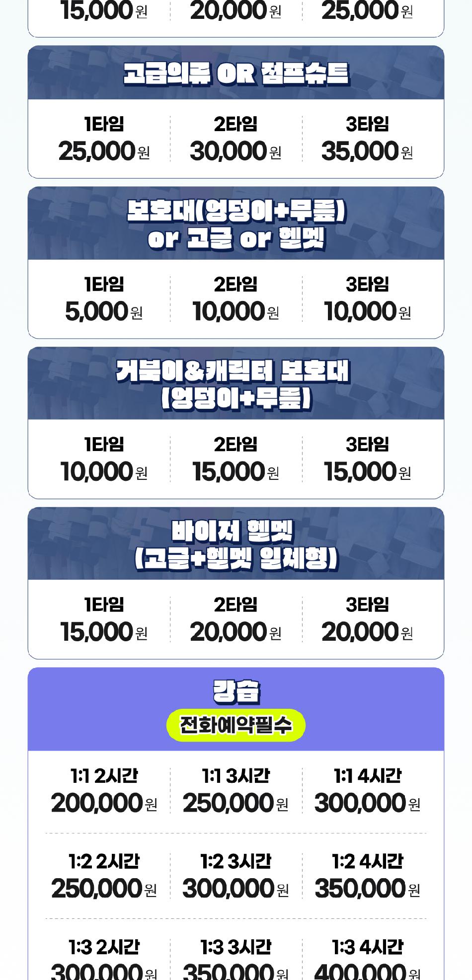 - 원하시는 날짜와 시간대를 추천드리며 실력, 경험 유/무, 연령등 충분한 상담 후 맞춤 강사배정으로 보다 재미있고 안전하게 강습을 받아보세요!