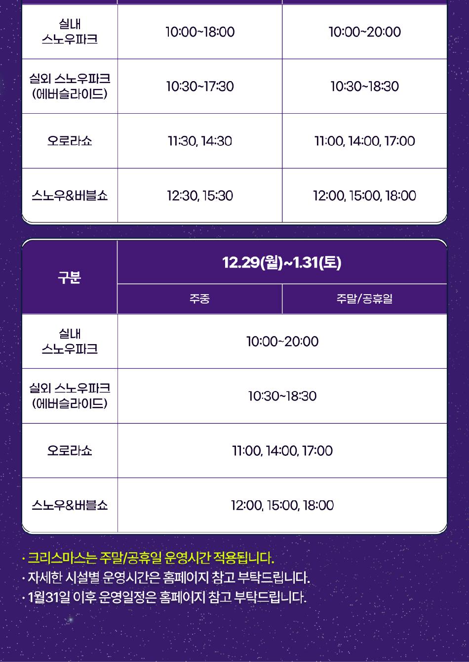 * ※ 자세한 운영시간은 컨텐츠 및 홈페이지 참고 부탁드립니다.
