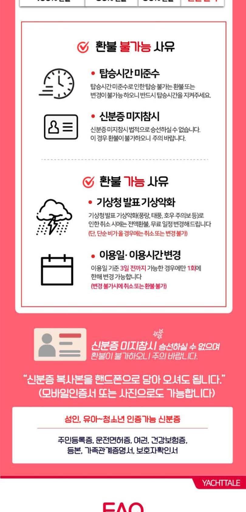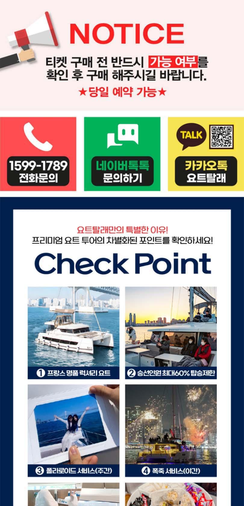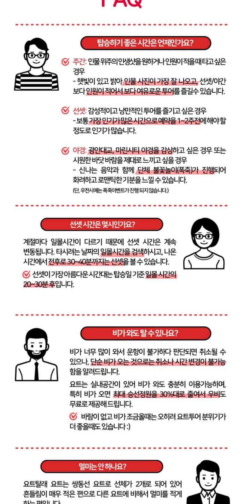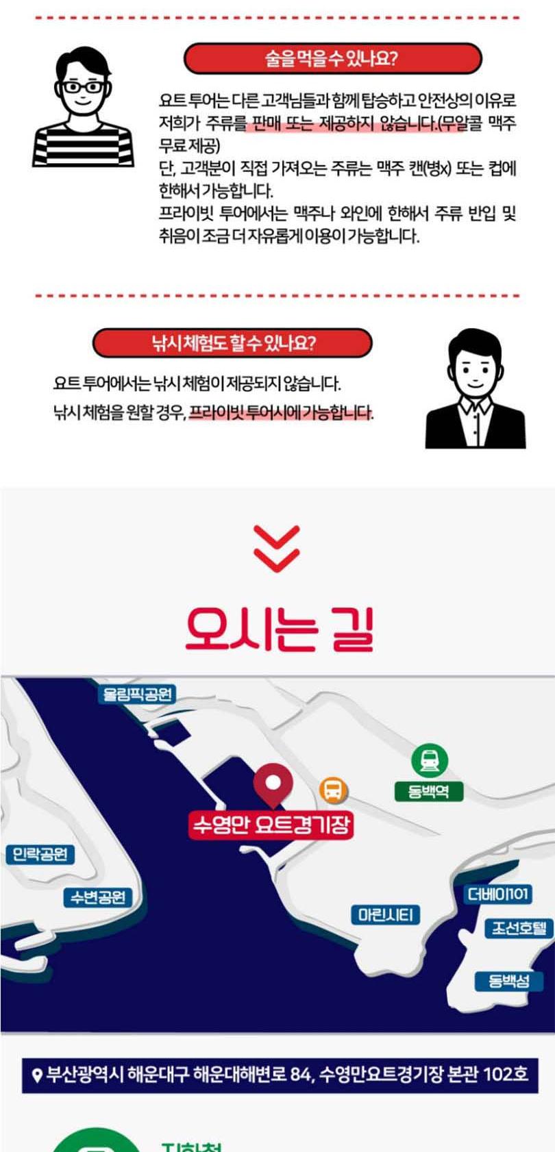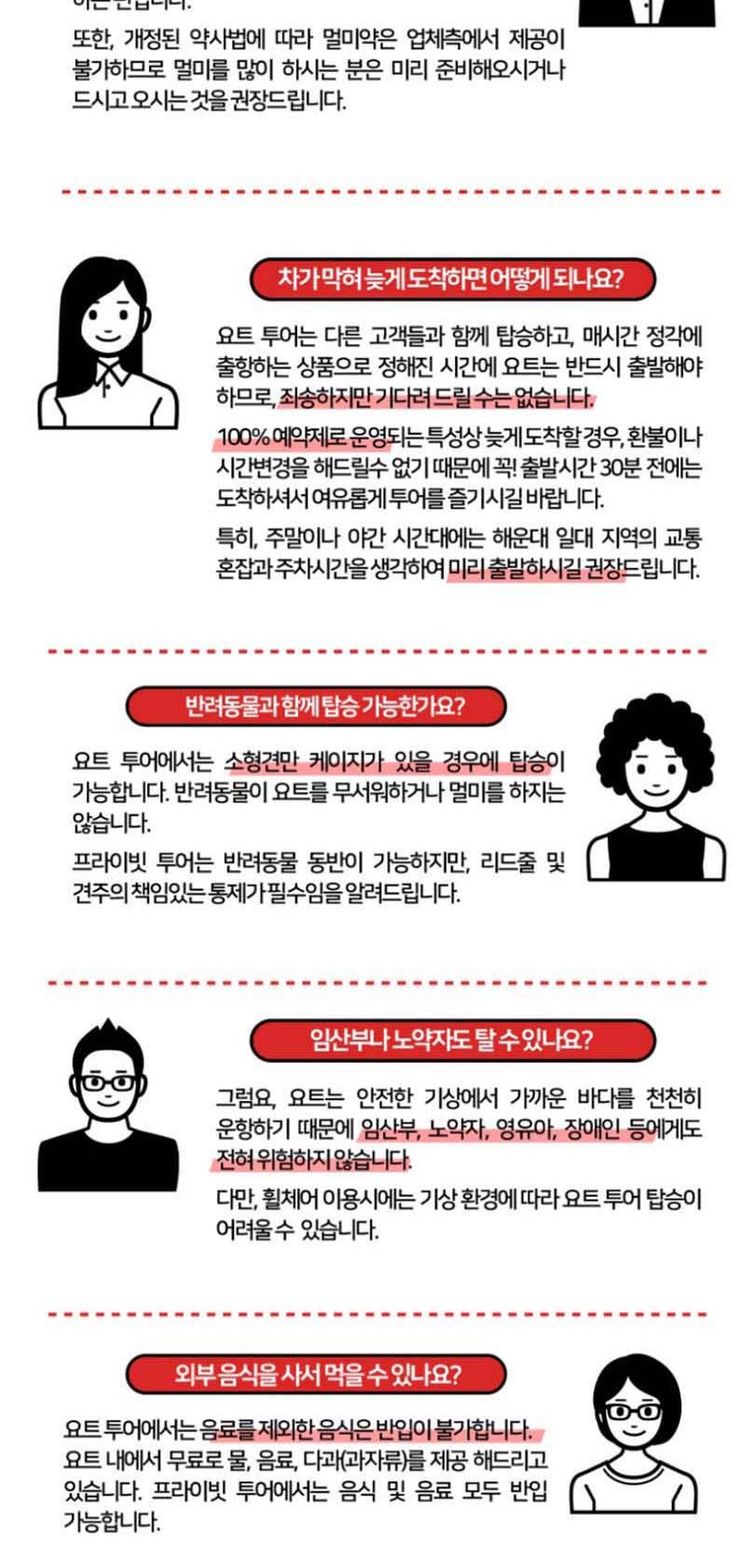 * 기존 제공되었던 멀미약 제공 서비스가 약사법에 따라 법이 개정되어 매표소 및 요트내부에서도 멀미약은 제공되지 않습니다