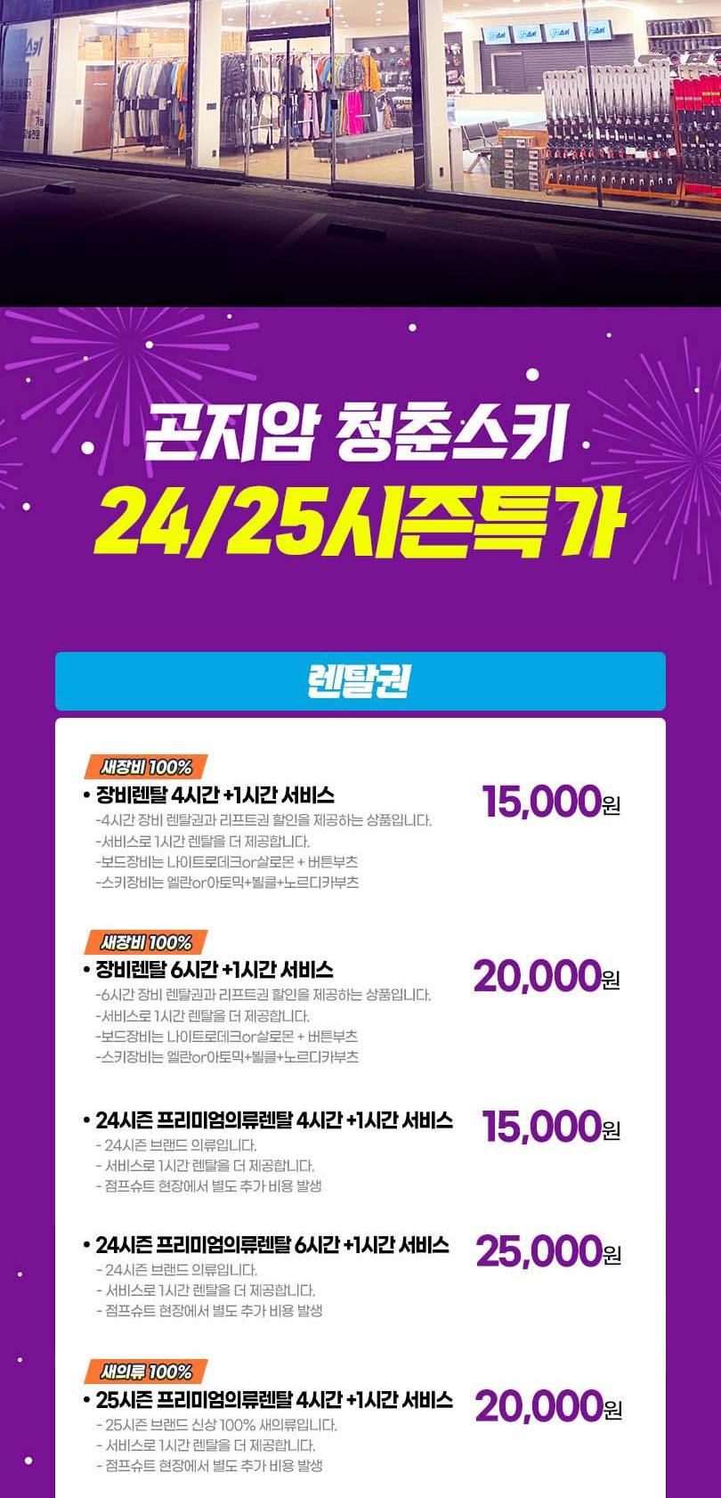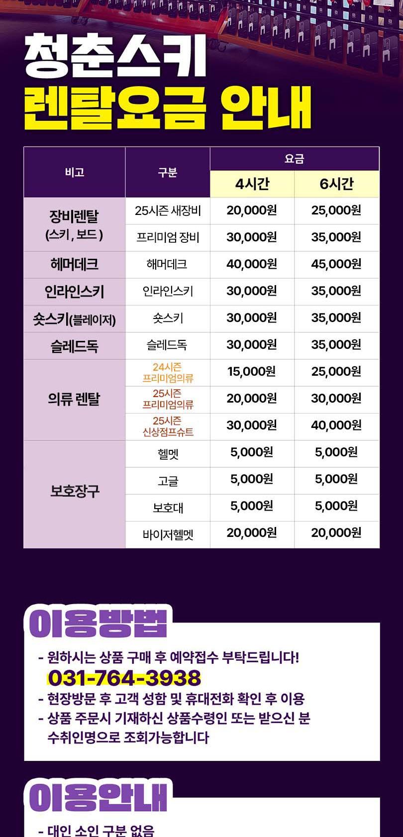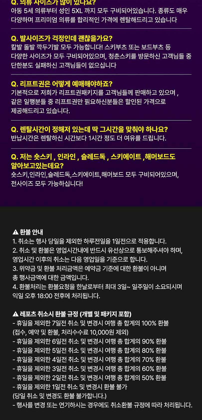 * 렌탈샵 상품으로, 스키장 개장 및 폐장 일정에 따라 유효기간이 달라질 수 있습니다.