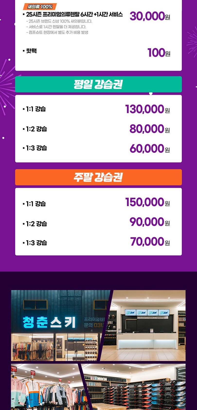 * ※ 현장 예약 현황에 따라서 강습 예약이 불가할 수 있어 티켓 구매 후 유선문의 필수