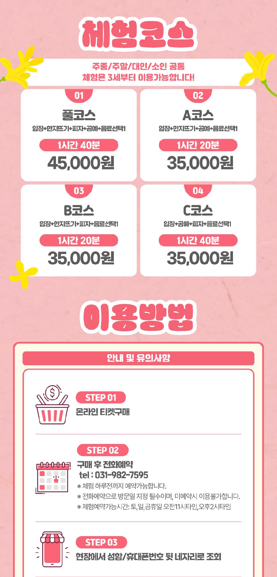 * 예약은 체험자 1명 기준이며 3세부터 체험 가능합니다.