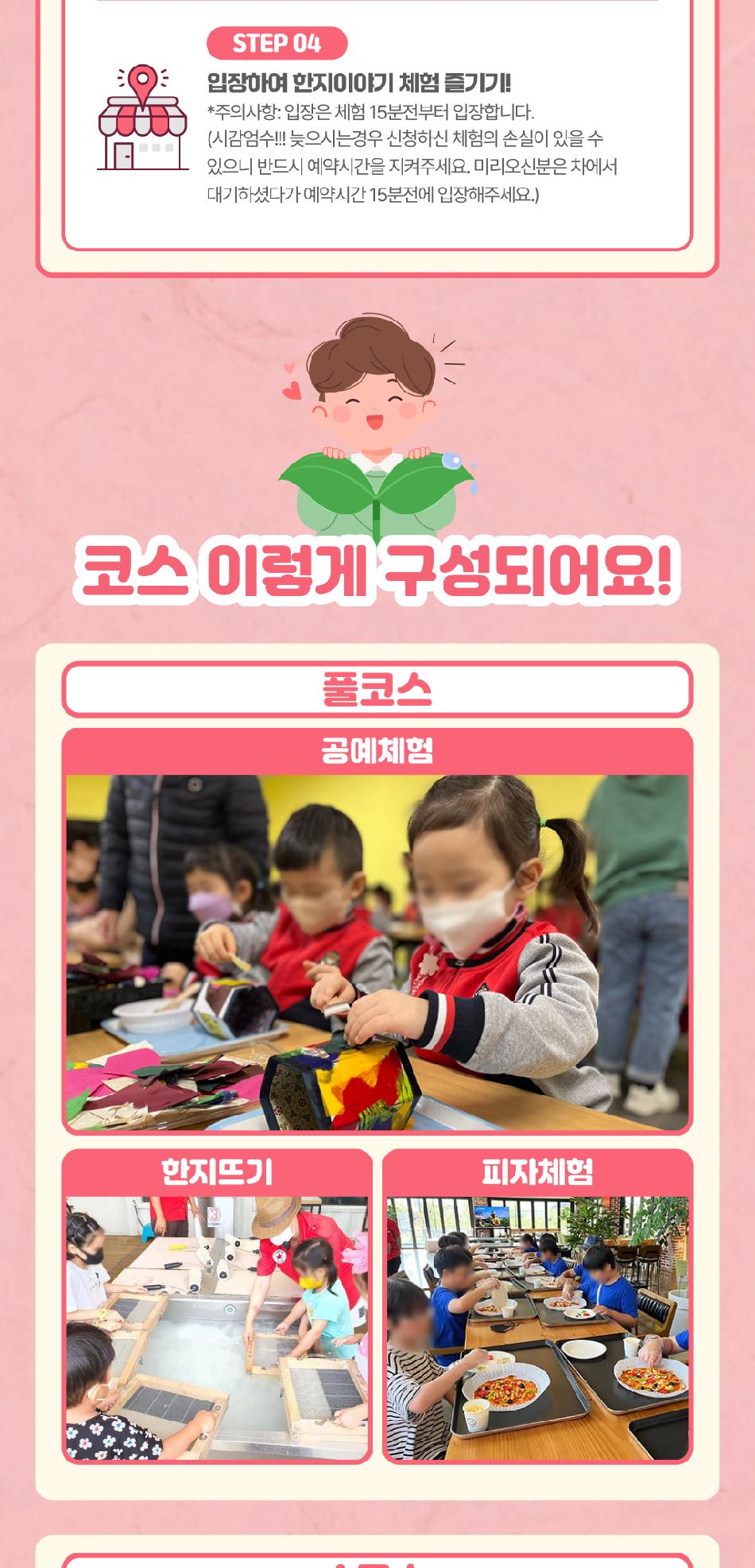- 주의사항: 입장은 체험 15분전부터 입장합니다.