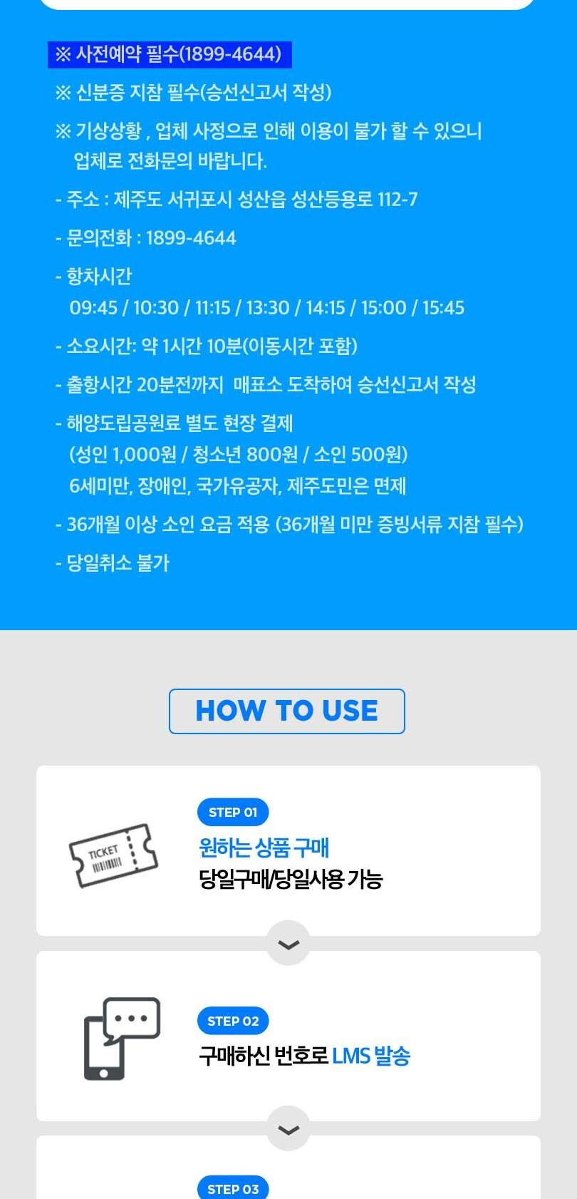 * ※ 기상상황 , 업체 사정으로 인해 이용이 불가 할 수 있으니 업체로 전화문의 바랍니다.