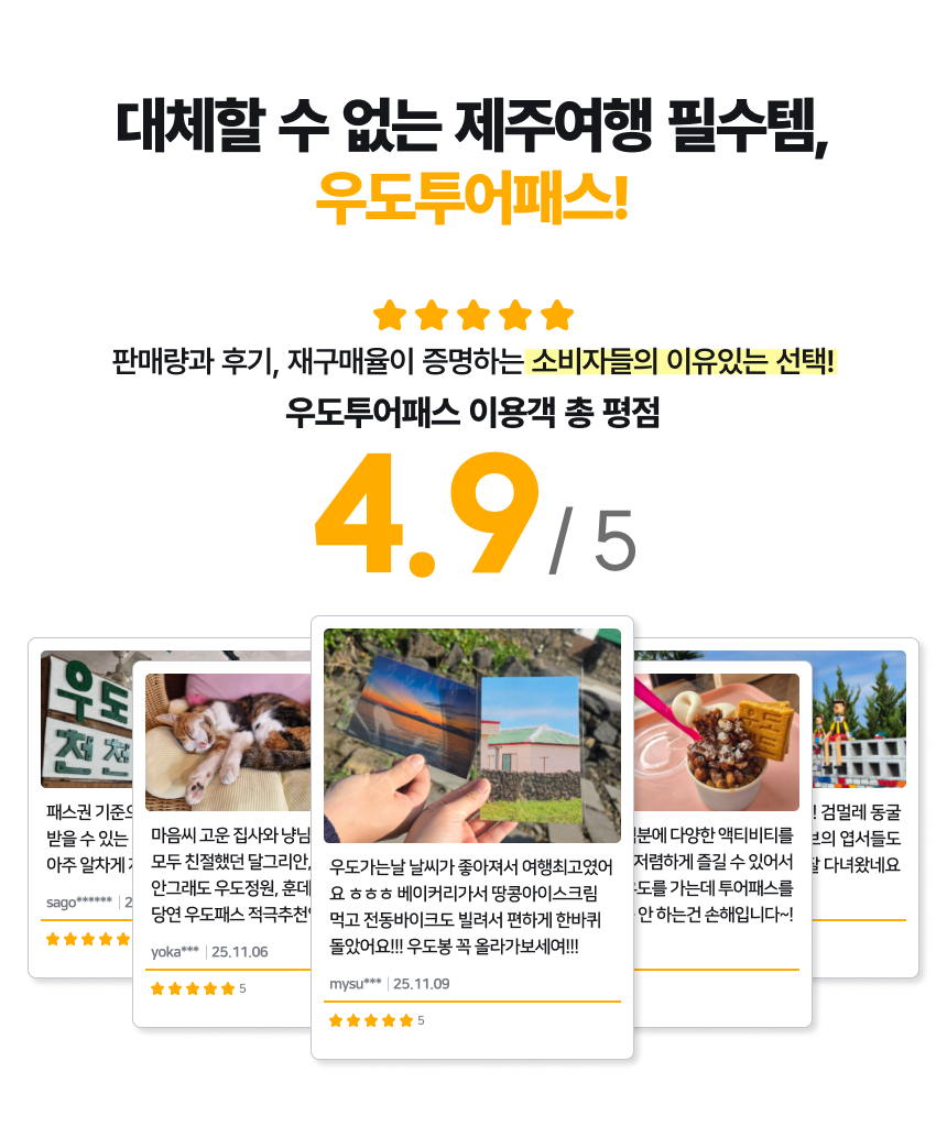우도투어패스 24시간권 (성인) : 구매일 + 60
