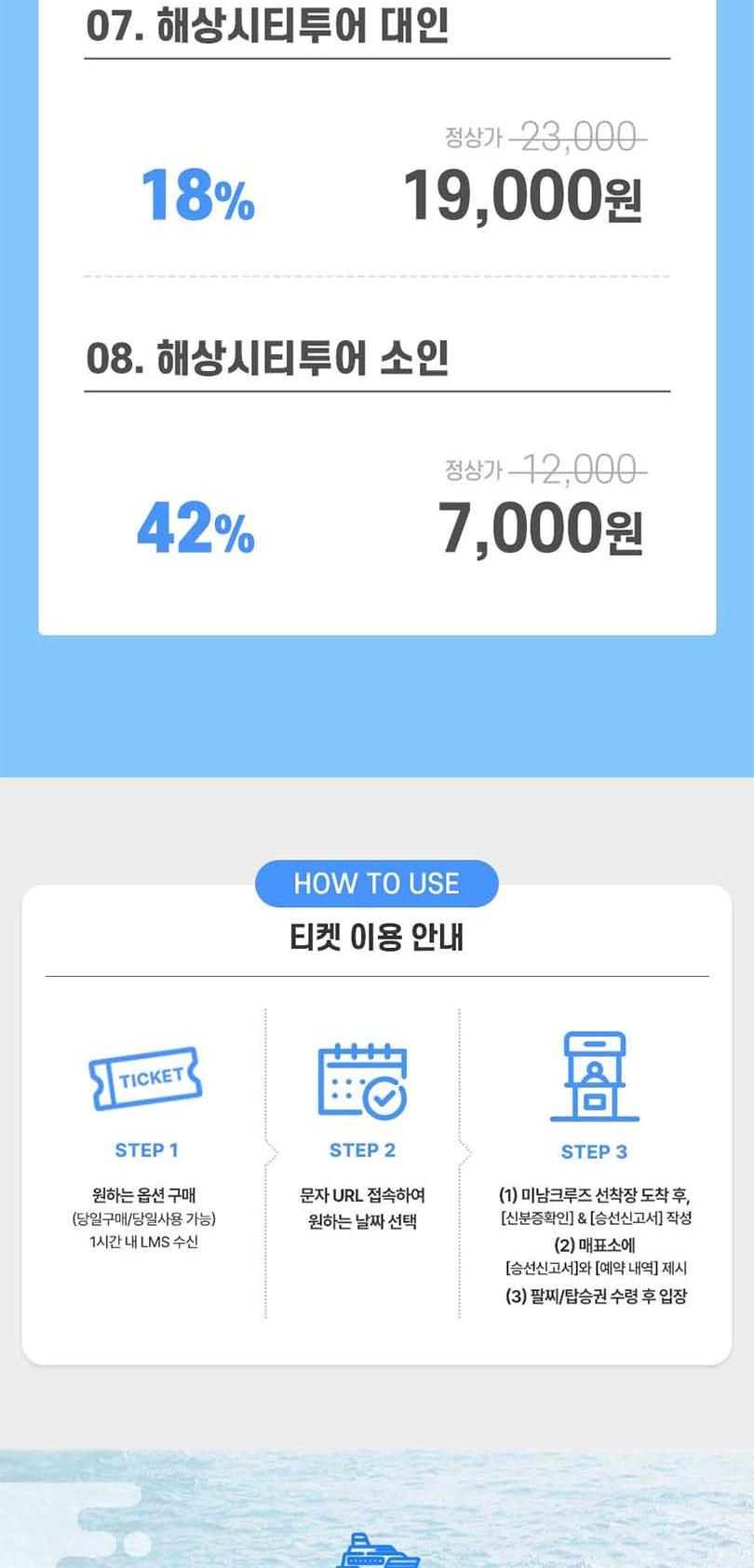 * 출항 30분 전까지 도착해주세요. 주말, 공휴일, 성수기 30분~1시간전 까지 도착 권장
