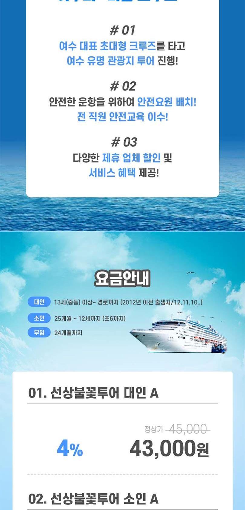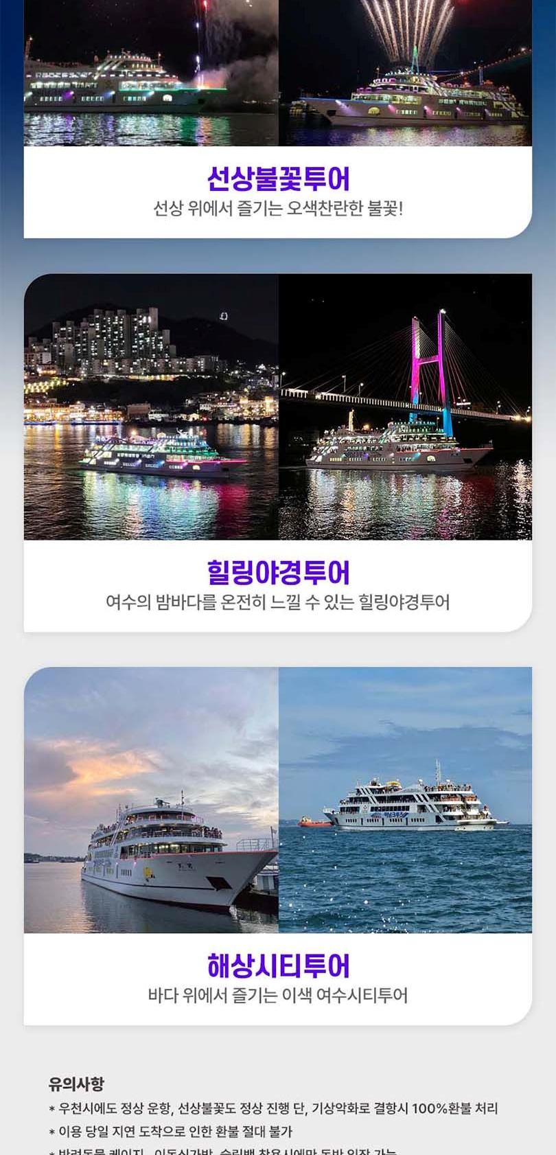 * 우천시에도 정상 운항, 선상불꽃도 정상 진행 단, 기상악화로 결항시 100%환불 처리