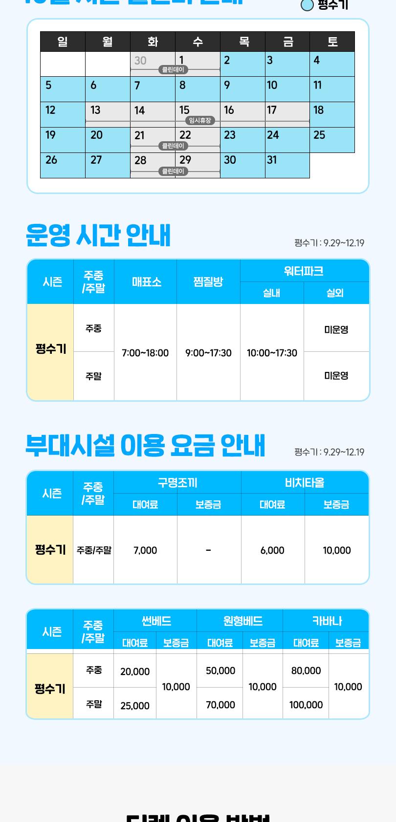 * ★매주 화~수는 클린데이로 이용 및 입장이 불가합니다.(※단, 추석 명절인 10/7,10/8 은 정상 영업)★