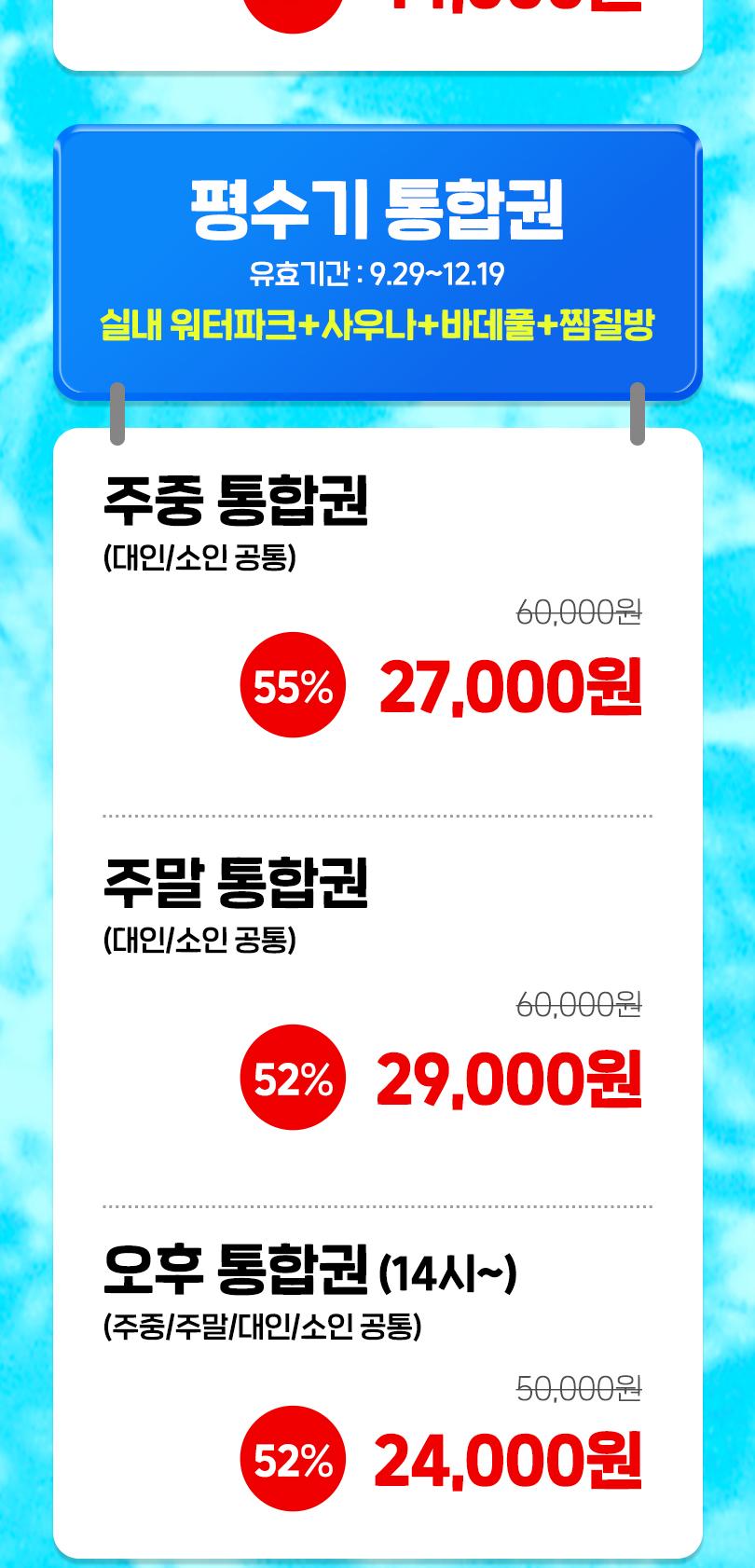 * 워터파크 입장 시 반드시 수영복을 착용해주시기 바랍니다. (찜질복 불가)