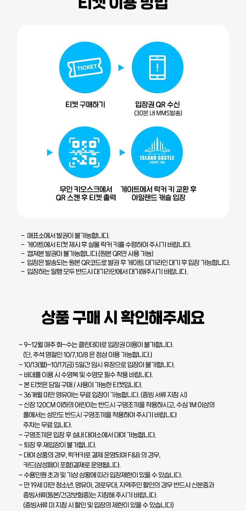 * 성수기 시즌/주말 또는 휴장 및 기상상황에 따라 경우 입장제한이 있을 수 있습니다.