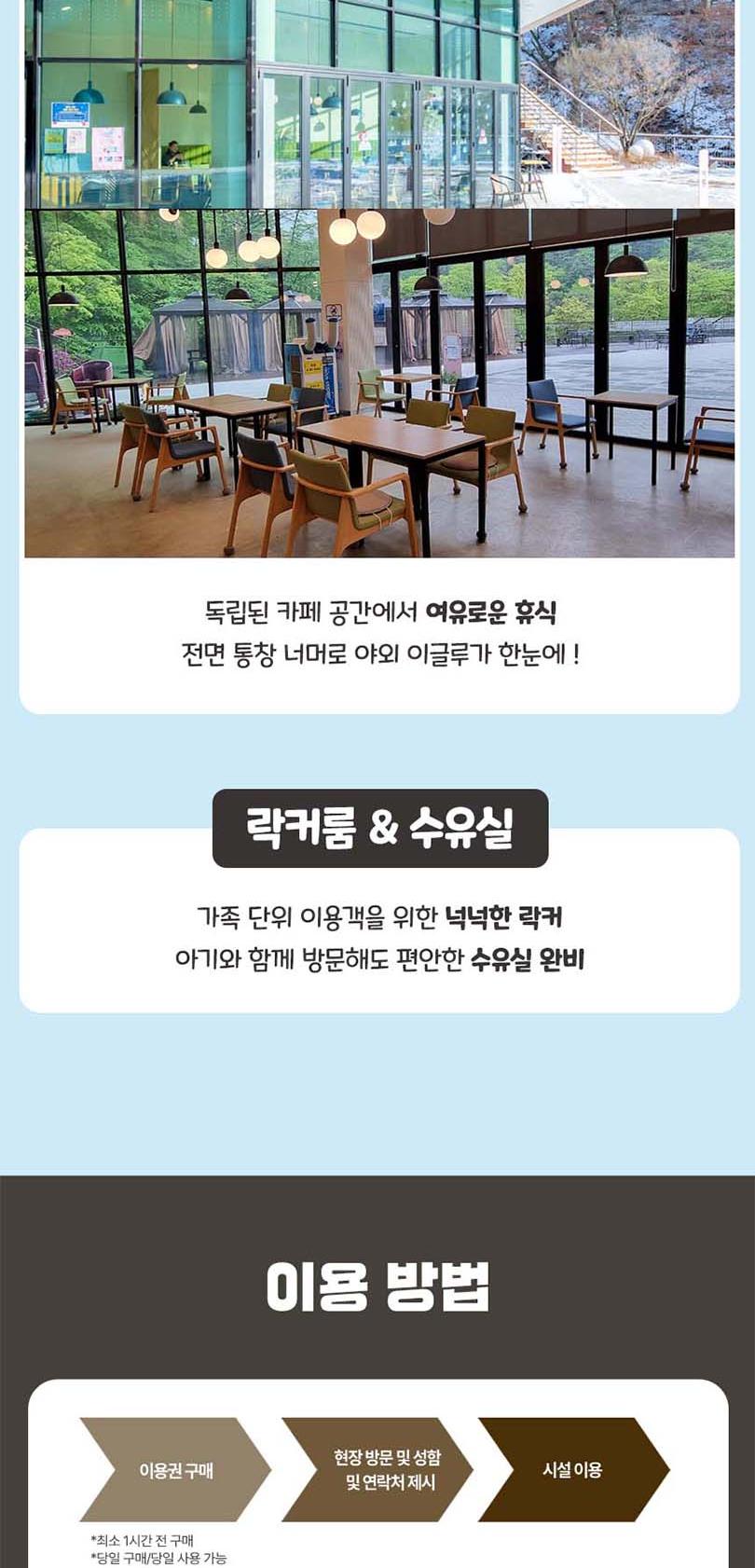 * 운영시간 : 실내 10시 ~ 18시, 실외 10시 ~ 17시