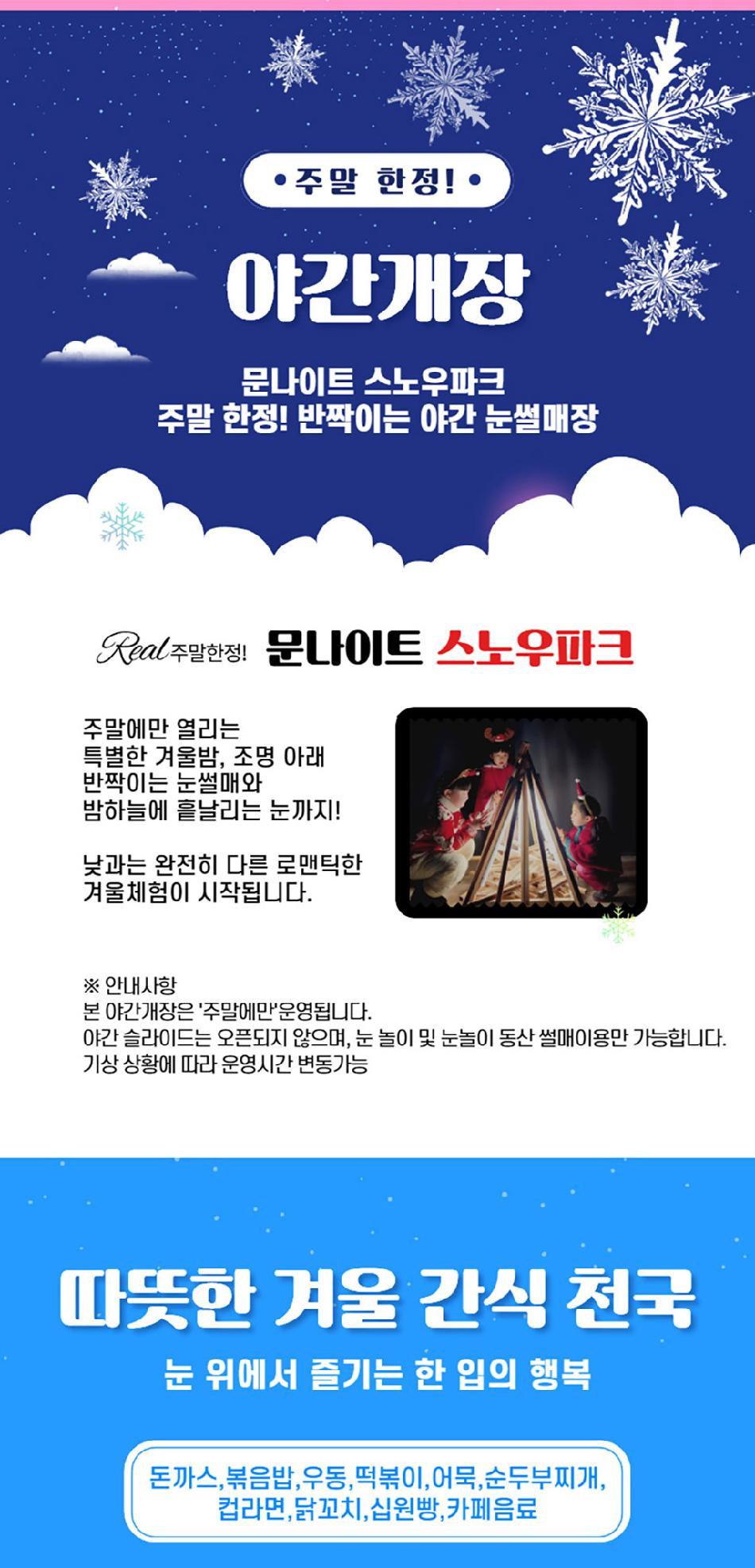 * 1) 눈썰매장 이용시 하나의 썰매에 2인 이상 동승할 수 없습니다.