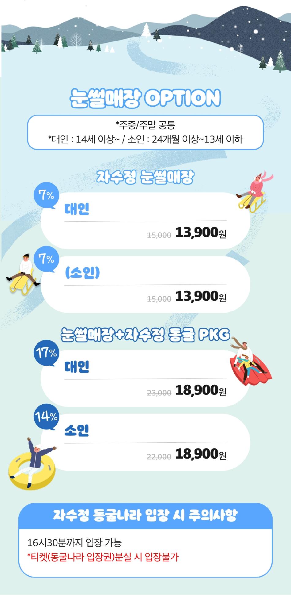 * 눈썰매+동굴 패키지 상품은 부분 사용/환불은 불가합니다.