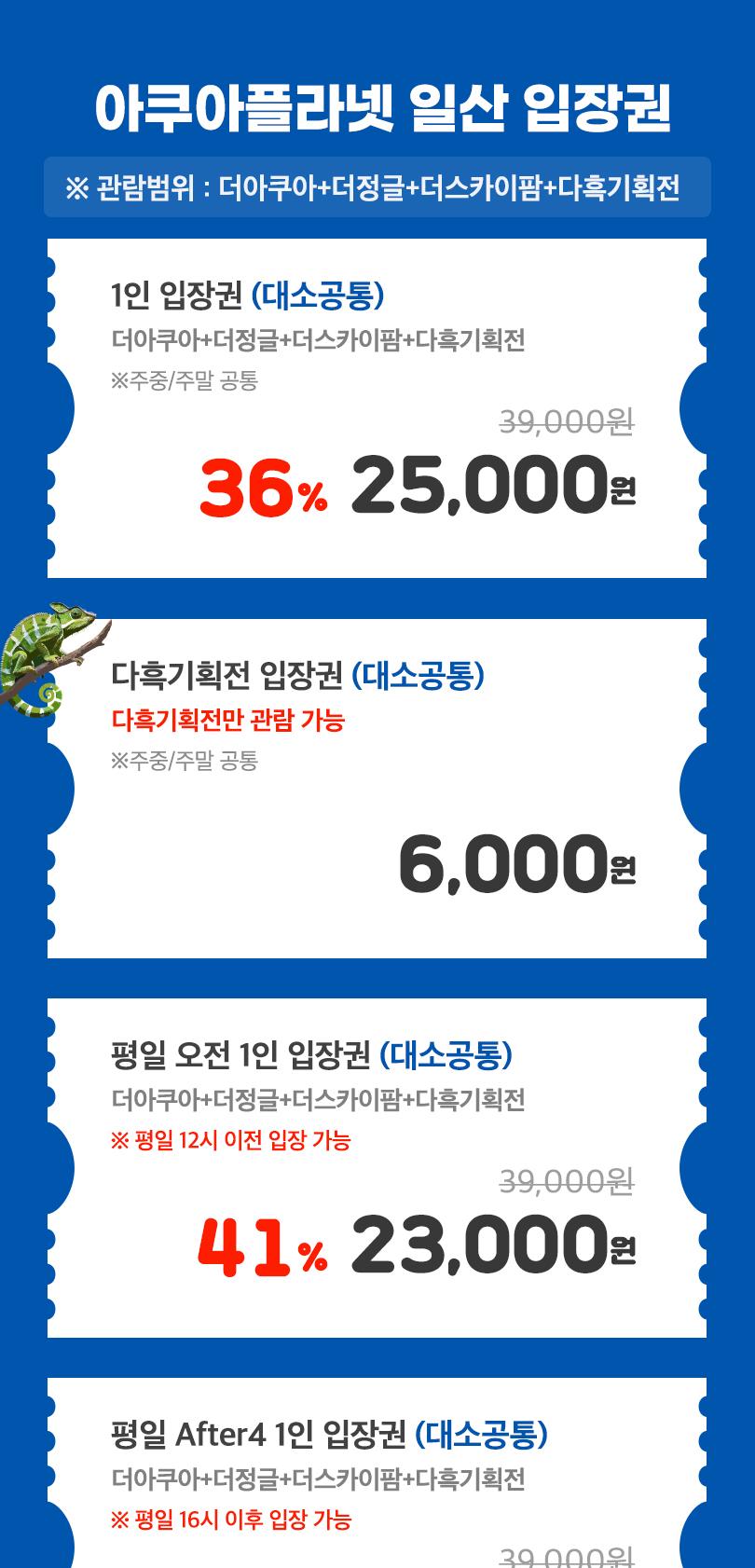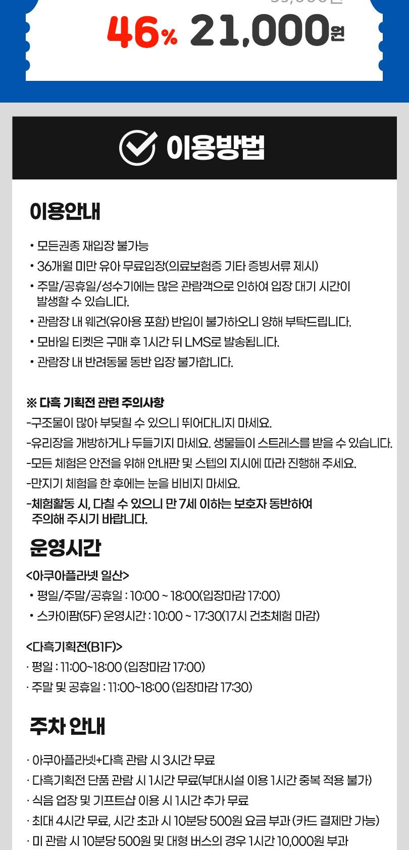 * 아쿠아플라넷+다흑 관람 시 3시간 무료 (인증 요청)