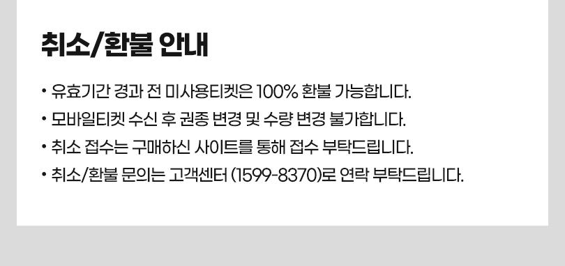 - 미사용티켓은 변경 및 취소환불처리가 불가합니다.