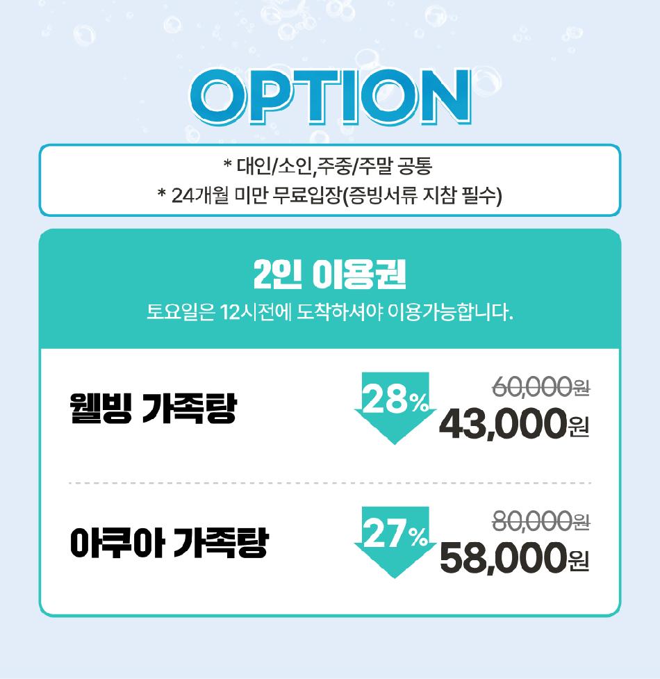 * 가족탕 기준 인원은 2인이며, 최대 4인까지입니다. (추가 1인당 10,000원)