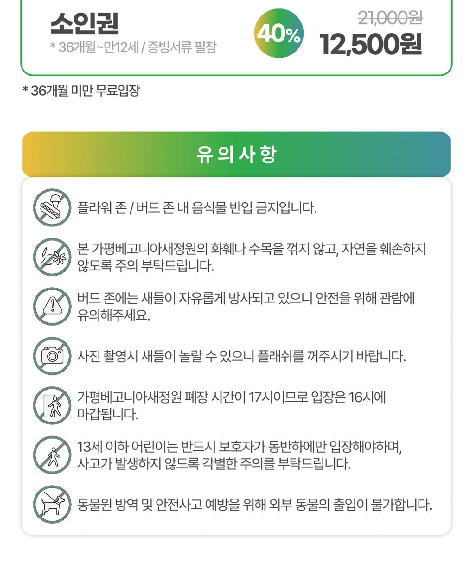 * 소인기준 : 36개월 ~ 만 12세 (증빙서류 필수 지참)