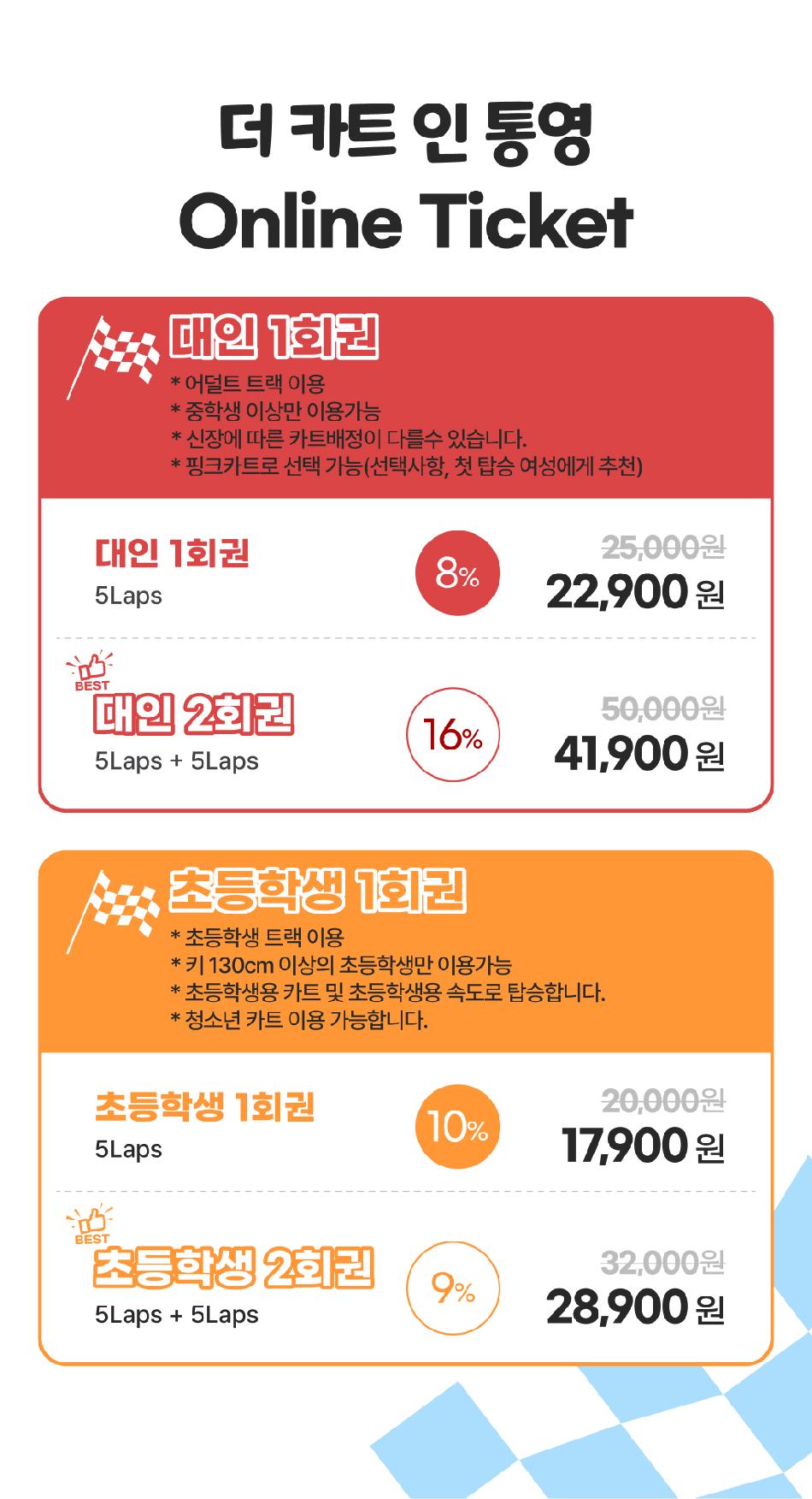 * 2) 핑크 카트는 130cm 이상의 여성만 이용이 가능합니다.(첫 탑승 여성고객에게 추천드리는 권종)