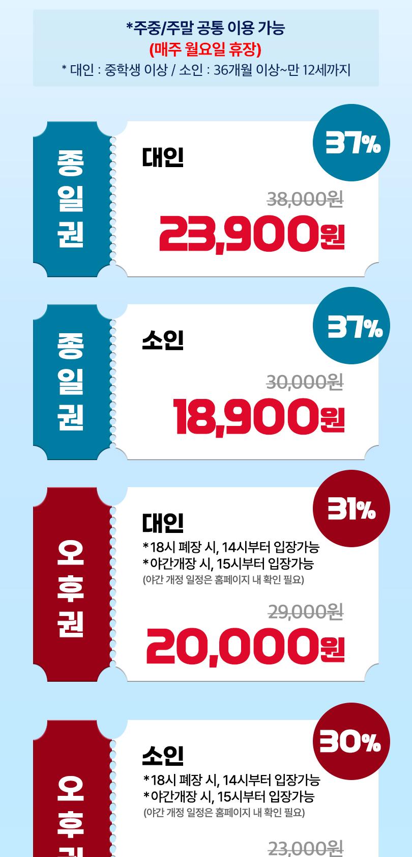 * 오후권의 경우, 폐장시간 별 입장시간 상이하오니 이용에 참고 부탁드립니다.
