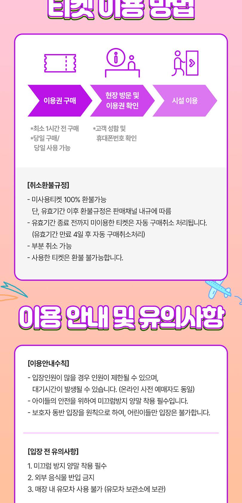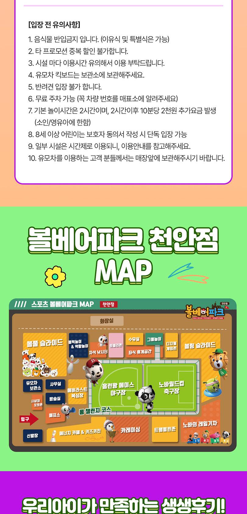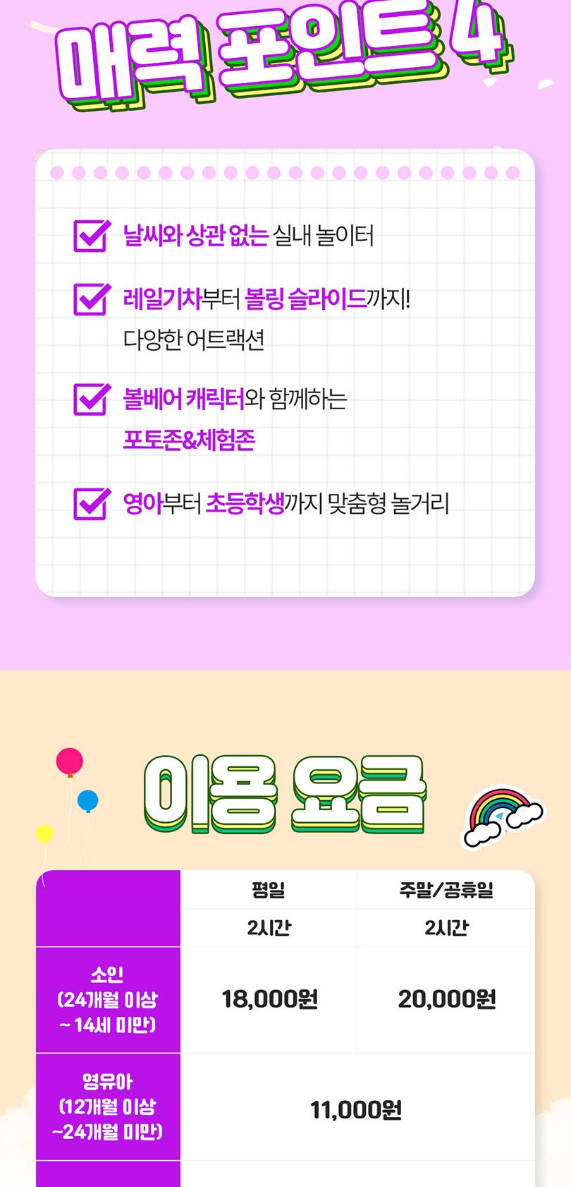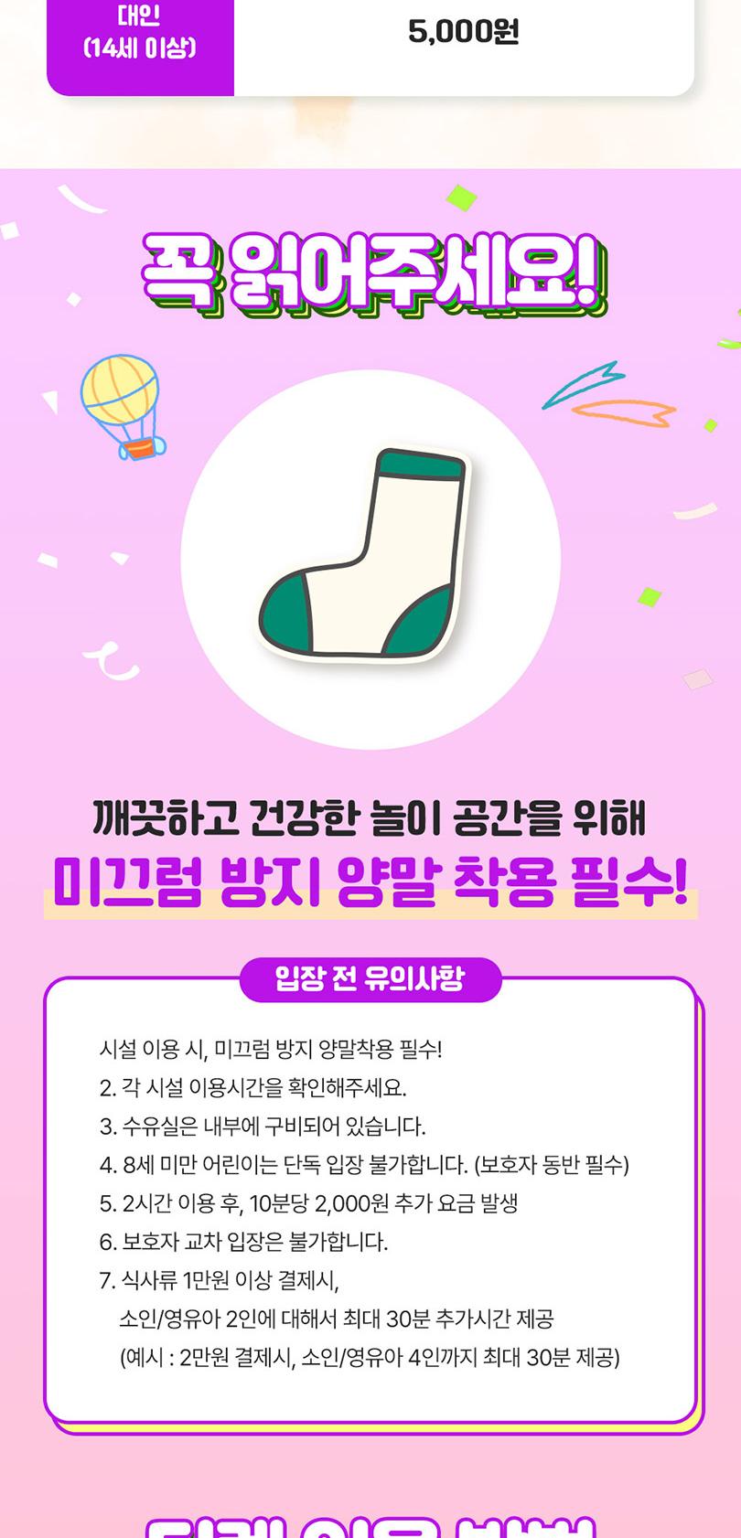*7. 기본 놀이시간은 2시간이며, 2시간이후 10분당 2천원 추가요금 발생(소인/영유아에 한함)