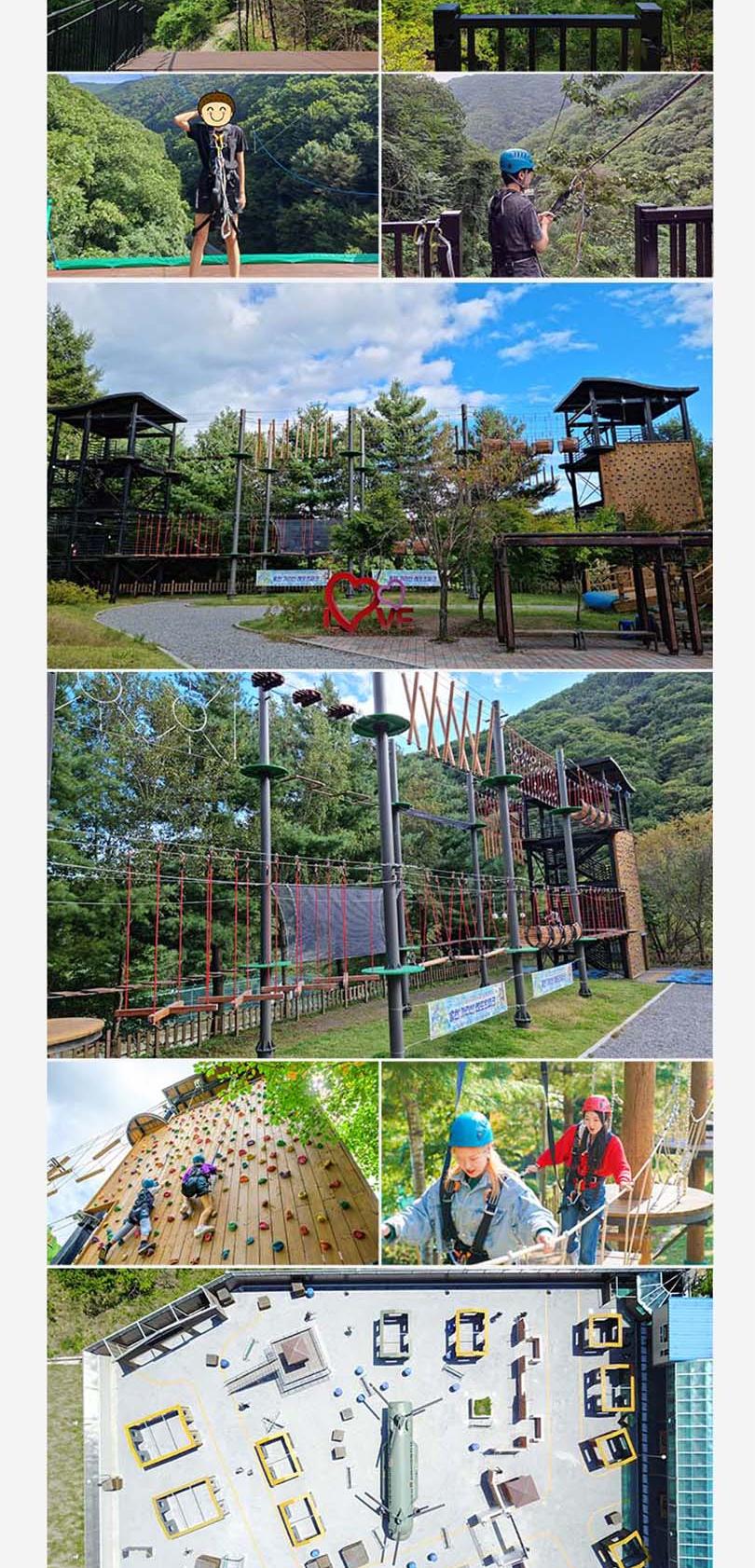 - 플라잉짚(짚라인): 몸무게 30kg이상 95kg 미만 탑승가능
