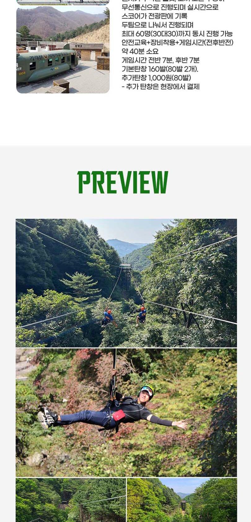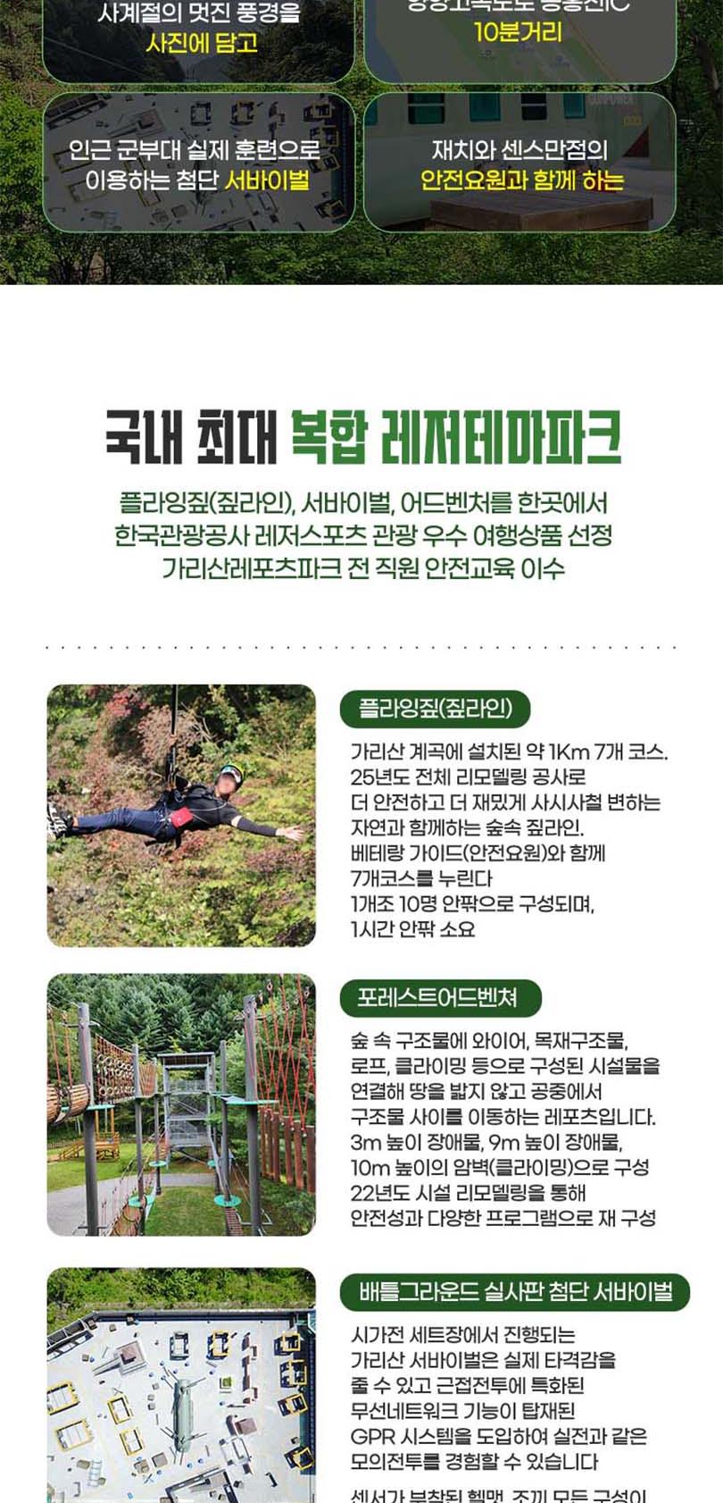 - 서바이벌, 포레스트어드벤처 : 초등학생 이상 이용가능