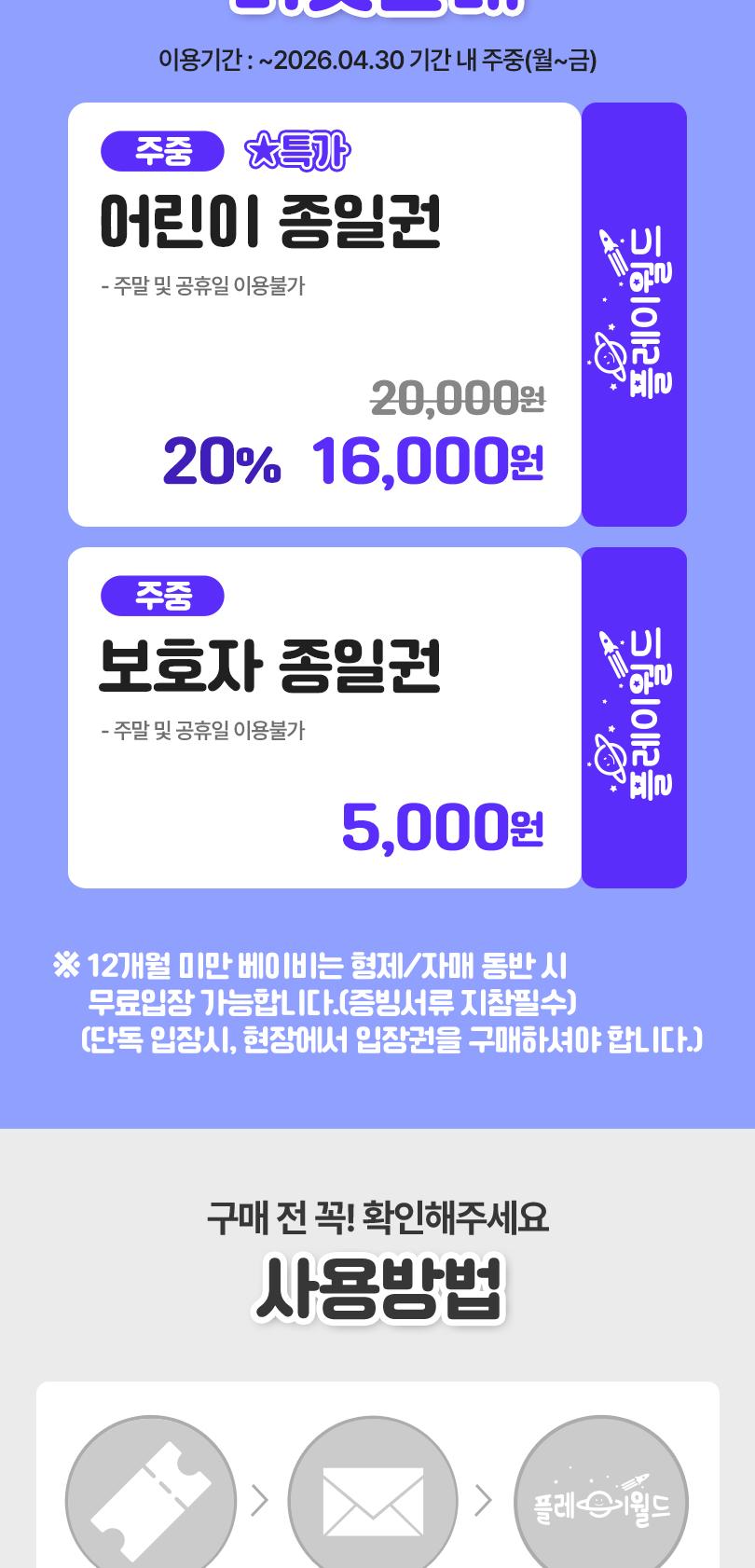 * ※ 주중 어린이AFTER4 티켓은 오후 4시부터 입장가능하며, 최대 수용인원 초과시 대기 발생할 수 있습니다.