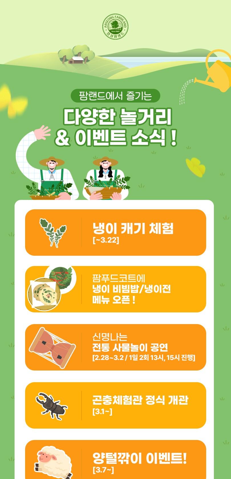 * 현장 운영 상황에 따라 운영시간이 변경 될 수 있으며, 방문 전 안성팜랜드 홈페이지 또는 SNS 계정에서 운영 시간을 확인해 주시기 바랍니다.