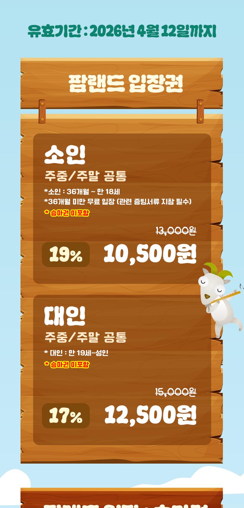 * 퇴장 후 재입장 시 당일자 팜랜드 입장권을 소지하셔야만 가능합니다.