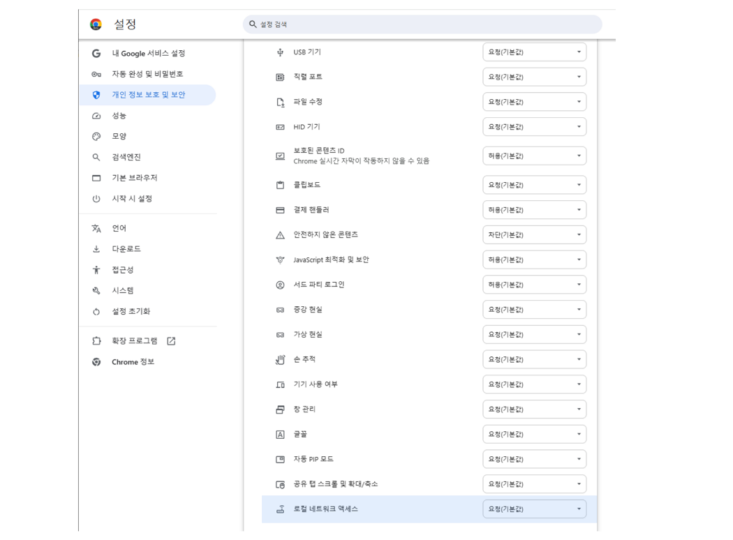 구글 크롬 브라우저 [로컬 네트워크 "Local Network Access"] 기본 활성화로 변경